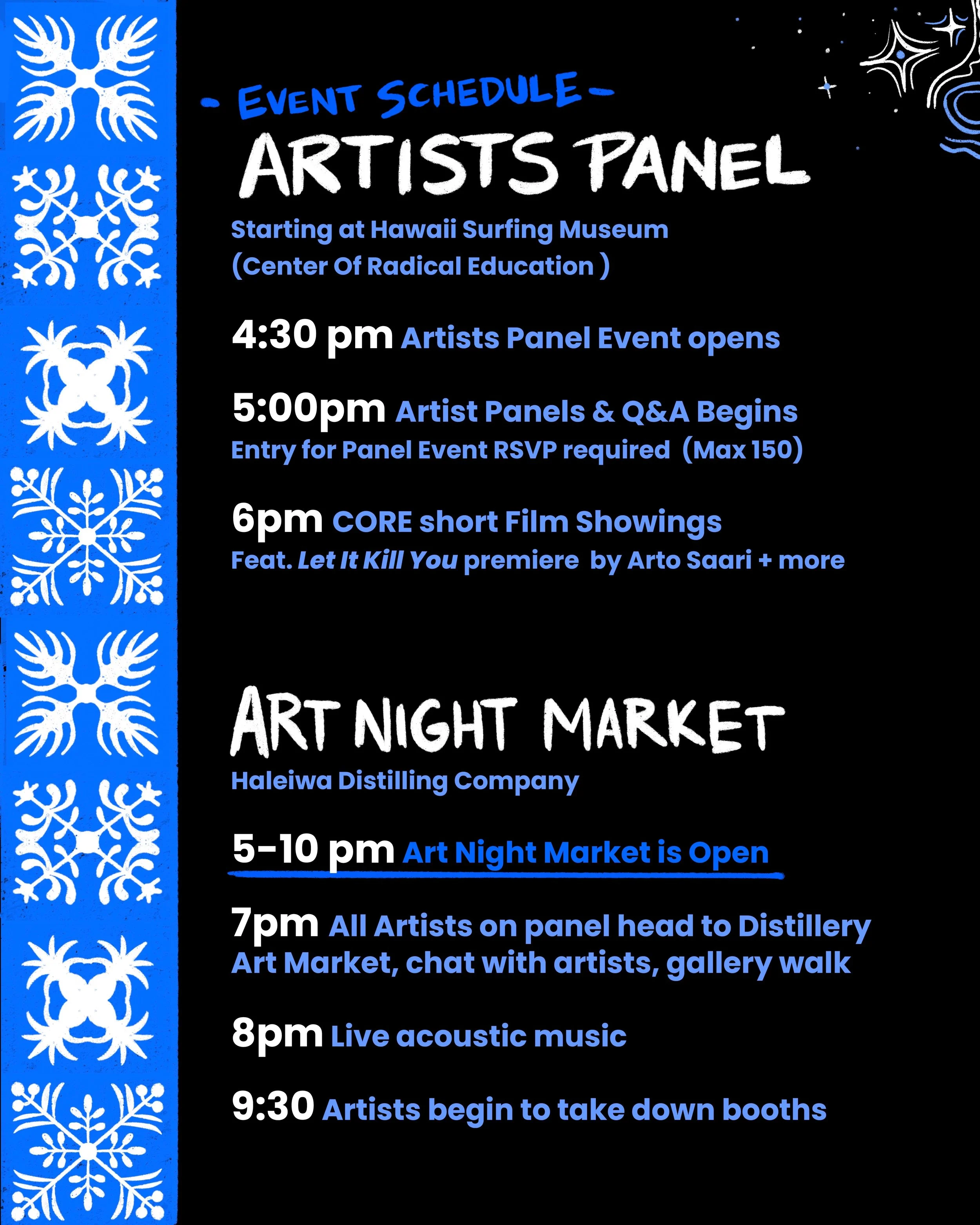 Makakū Night was a gathering of around 20 artists with an art market, artist panel with Q&A, and the North Shore premiere of Arto Saari ‘Let It Kill You’ episode.